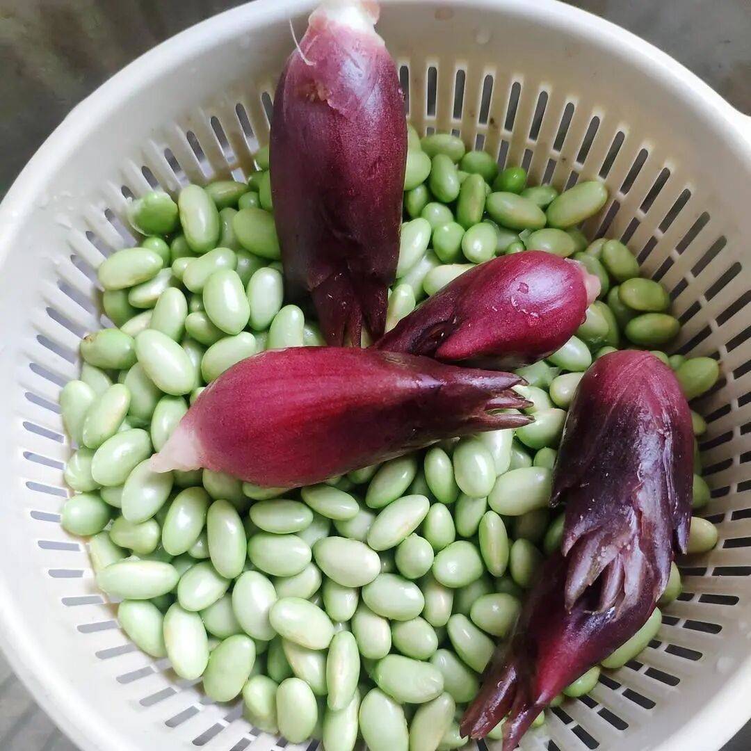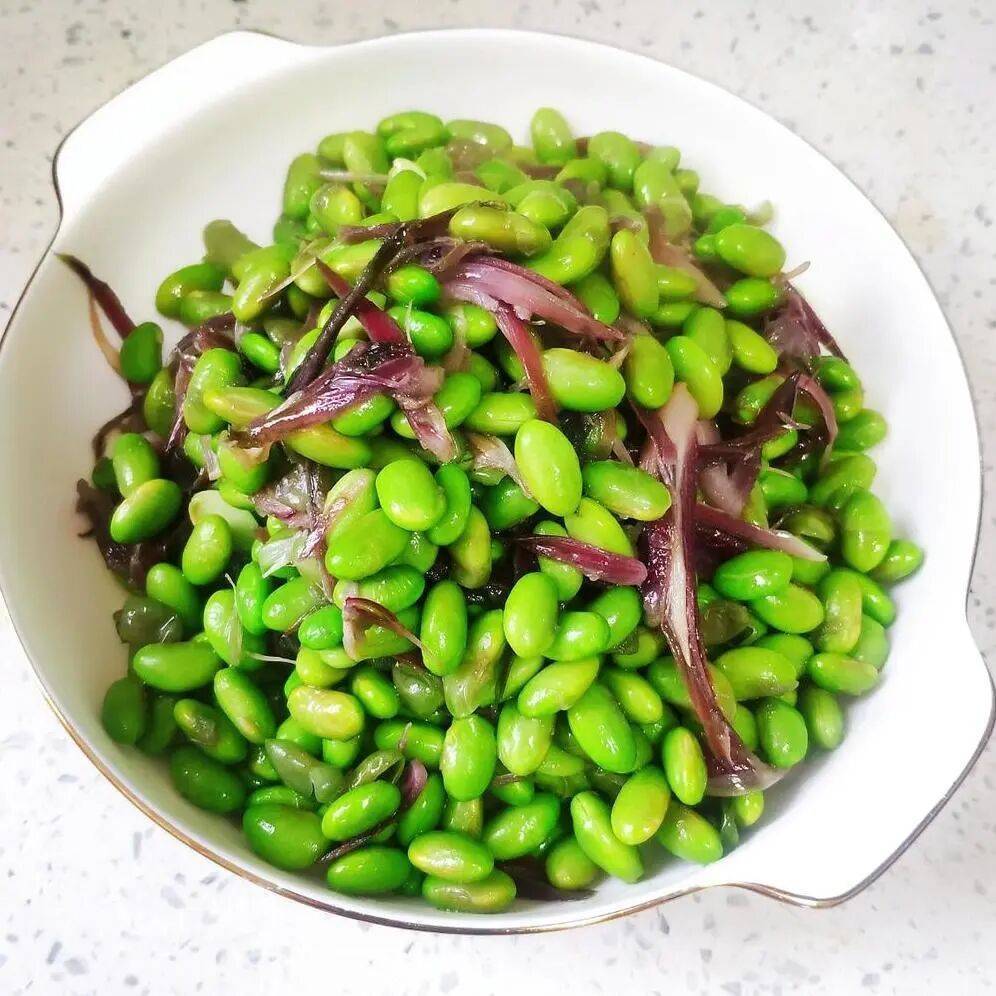 1. 把洋荷与毛豆清洗干净,将洋荷切丝后,再次清洗。